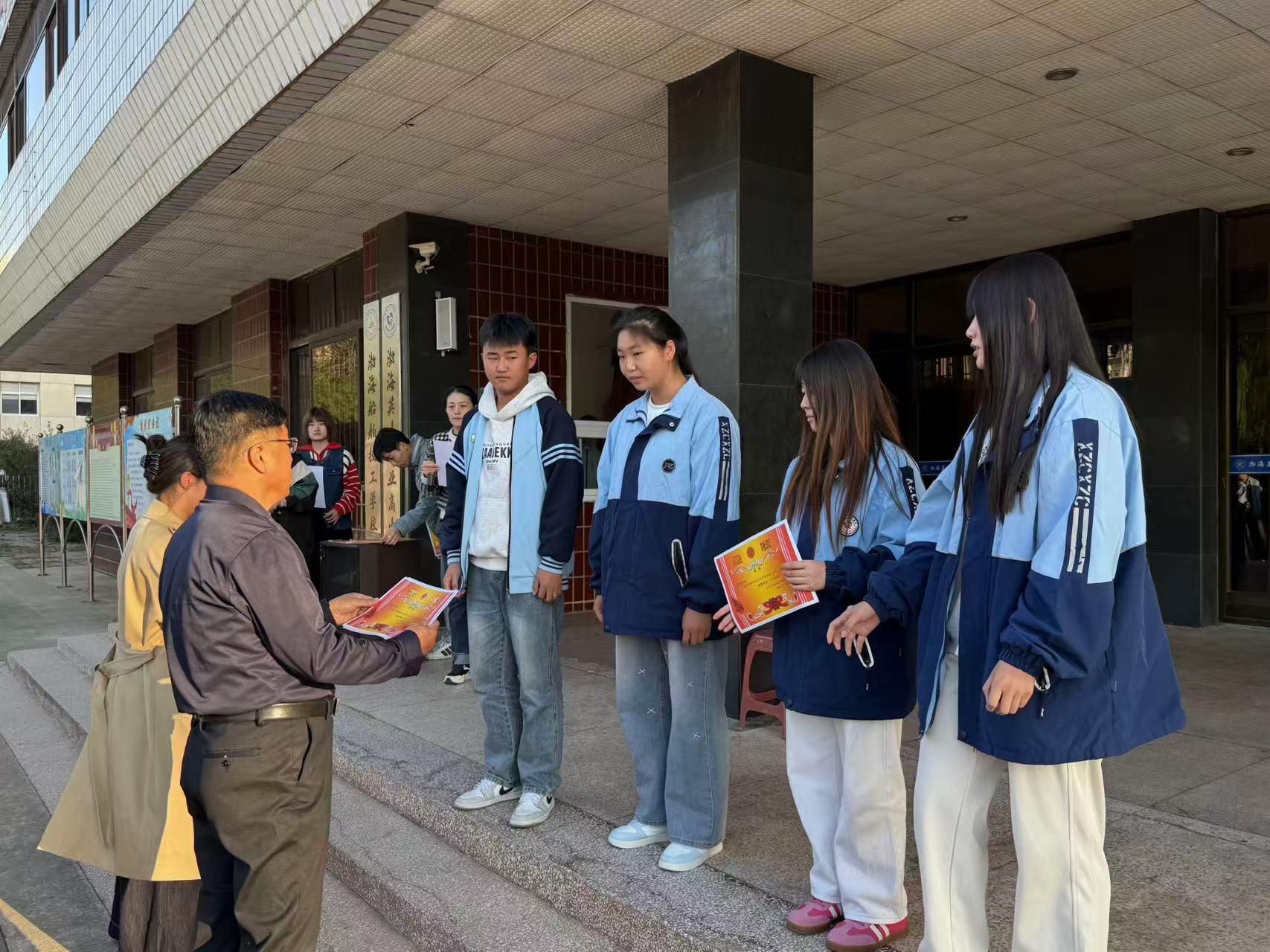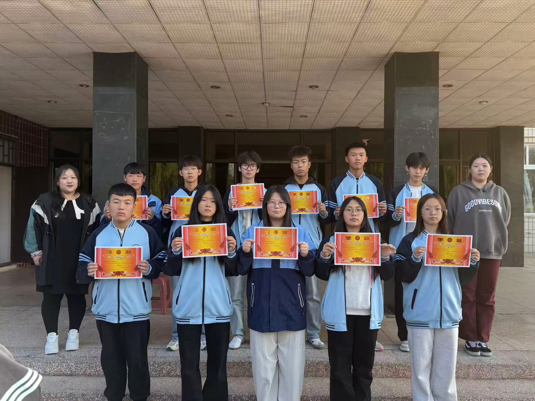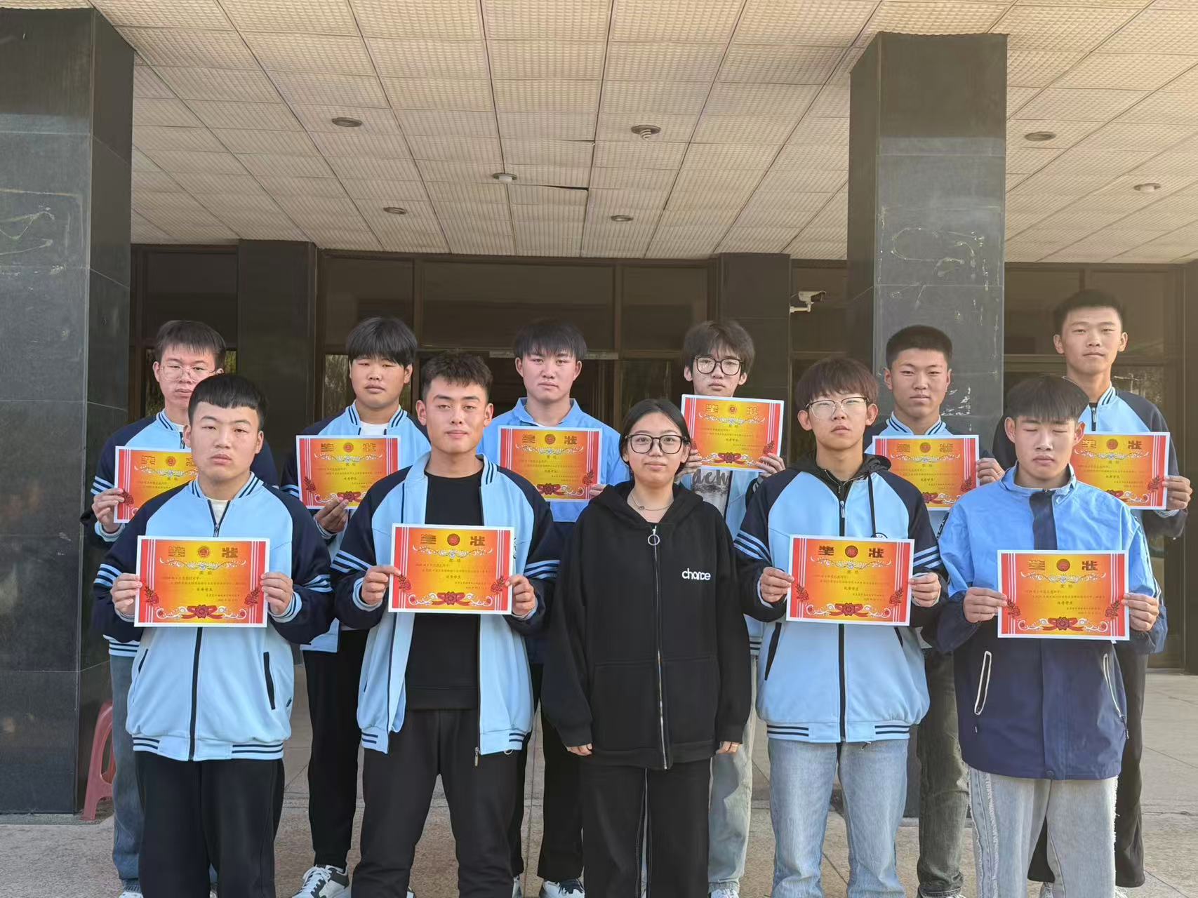 随后,校领导为获奖学生颁发奖状,每一位走上领奖台的学生都面带自豪的笑容,台下则响起此起彼伏的掌声与欢呼声,现场氛围热烈而庄重。一张张奖状不仅是对学生努力的肯定,更承载着学校对大家未来发展的期许,也为全体同学树立了学习榜样,激励大家以更饱满的热情投入后续学习与生活。