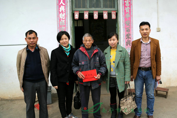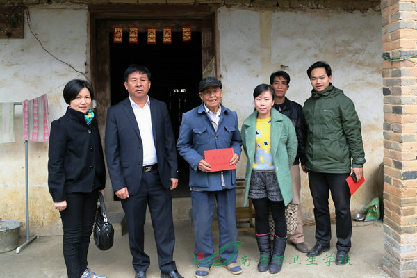 陈运英副书记(左一)和赵玲莉副校长(右二)慰问隆德村困难党员