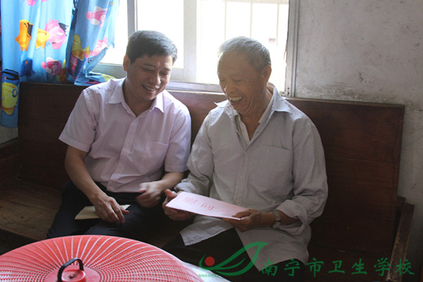 刘晓军校长(左)给老同志送上慰问金