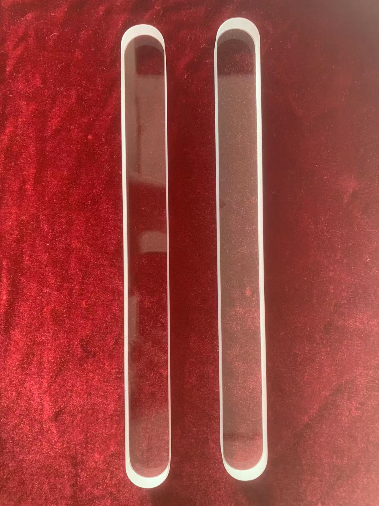 特殊要求的特殊异型件、是高纯石英材料、经过精雕或者是加工中心进行表面定型后、再经过光学加工处理、精磨、抛光等工艺加工而成、根据客户的需求、加工成各种形状、开槽、打孔、球面、非球面、斜面、锥形、磨砂件及抛光件等等